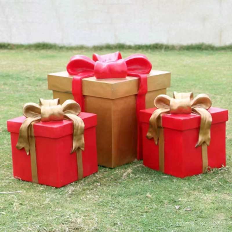The surface coating protects the decoration from weather and daily wear, so it performs well in both indoor and outdoor environments. Businesses often place these holiday present decorations at entrances, plazas, and event areas to create eye-catching Christmas scenes.