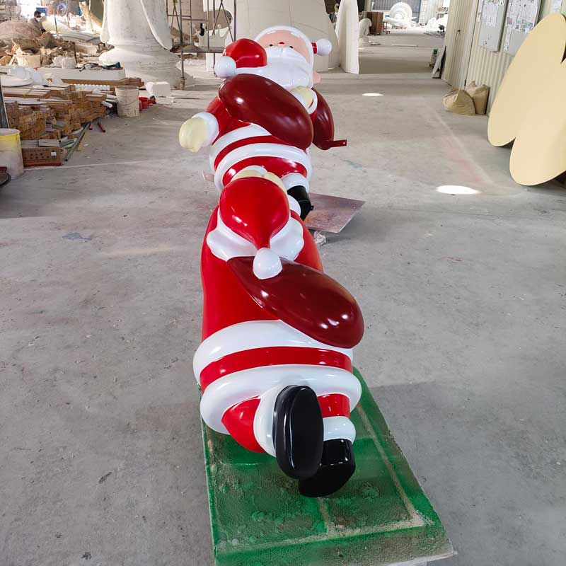 Tolili fiberglass Santa Claus statue – festive Christmas decoration for malls, hotels, and public displays. Custom sizes and designs available.